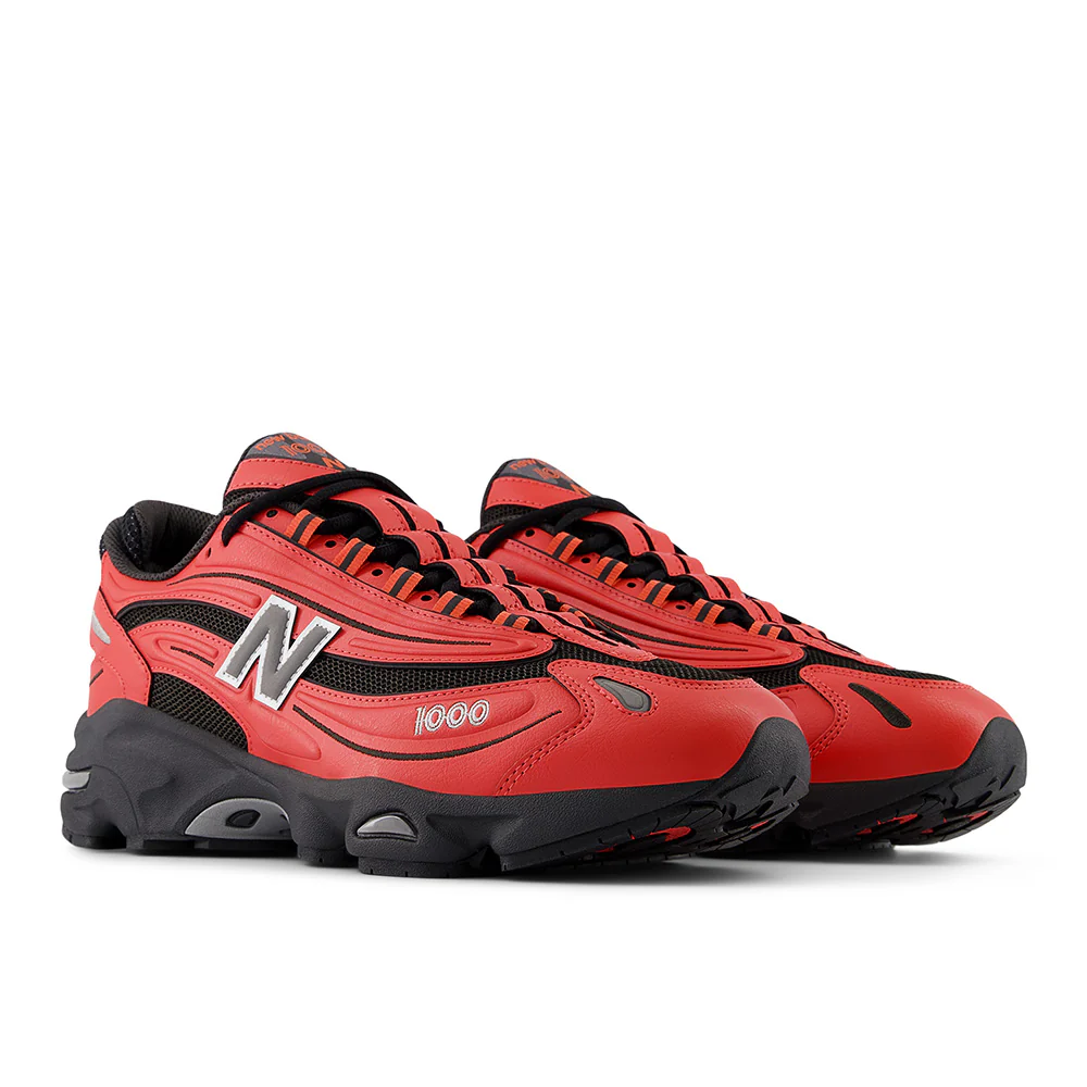 Originally released in the early 2000s, the New Balance 1000 makes a striking comeback with this aggressive red and black colorway. The upper combines breathable mesh with durable leather overlays, delivering both structure and ventilation. Signature details like segmented paneling and reflective accents add a futuristic Y2K vibe, while the chunky midsole offers exceptional comfort and support for everyday wear.