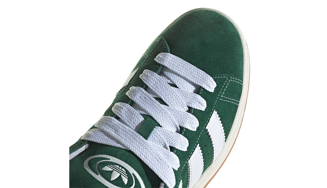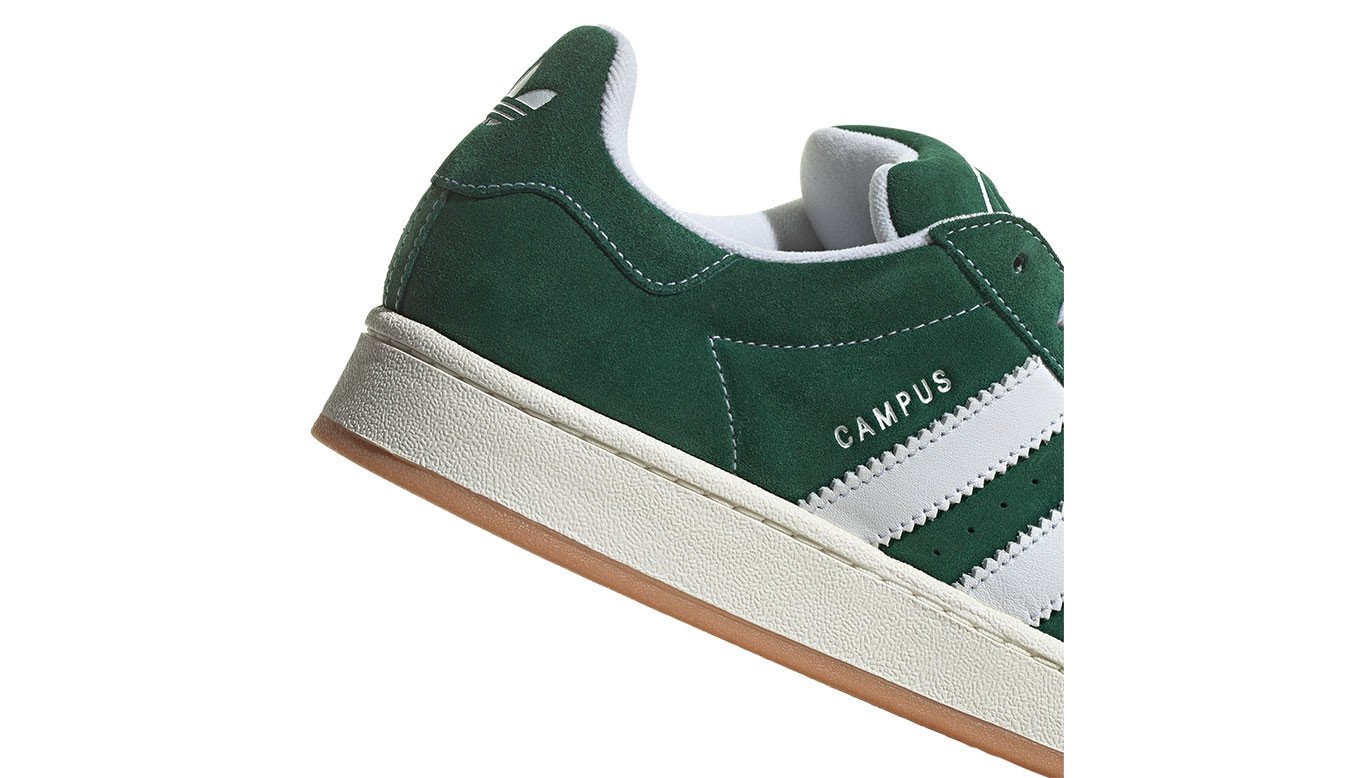 The adidas Campus 00s Dark Green Cloud White comes in a dark green, cloud white, and off-white color scheme.