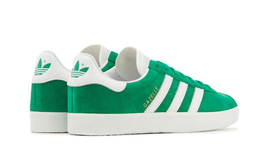 Experience timeless elegance with the Adidas Gazelle Green/White/Gold Metallic. This sneaker boasts a premium suede upper in a rich green hue, delivering a luxurious texture and standout appeal. The iconic 3-Stripes in crisp white synthetic leather add a classic contrast, while the gold metallic “Gazelle” branding on the side adds a touch of sophistication and heritage.