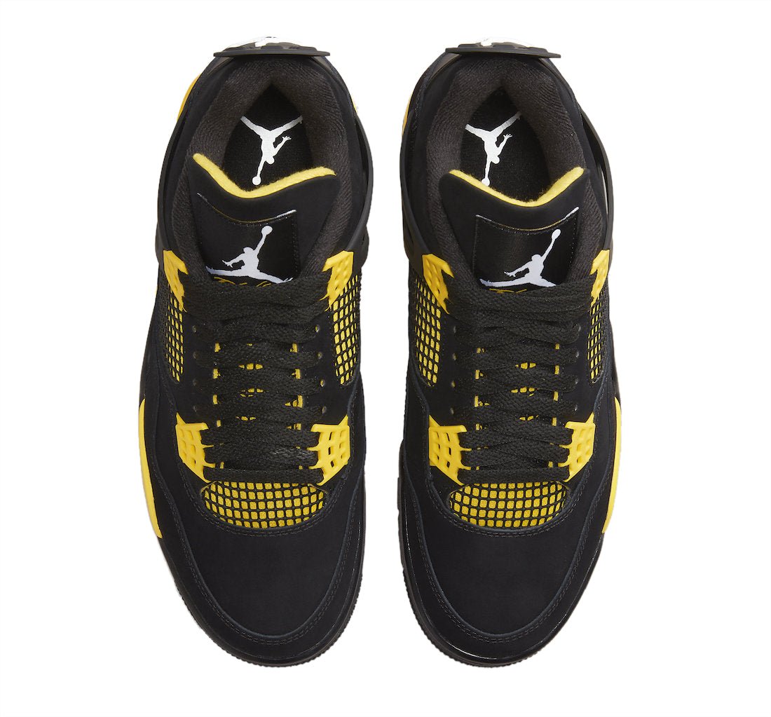 Unleash power and style with the Air Jordan 4 Retro Thunder, offering premium materials, enhanced cushioning, and a bold black and yellow colorway for a striking and confident look both on and off the court.