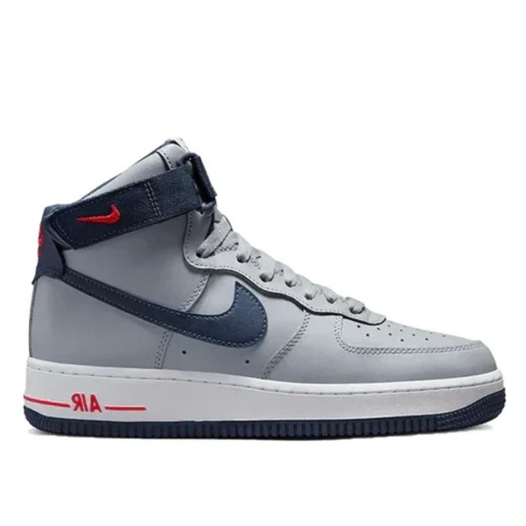 There Nike Air Force 1 High QS Patriots Displays a base in Gray smooth leather accompanied by a Swoosh Navy blue side granted to the strap and the outsole. We notice a few touches of red at the brandings to complete the color reminding the team of Football of the New England Patriots.