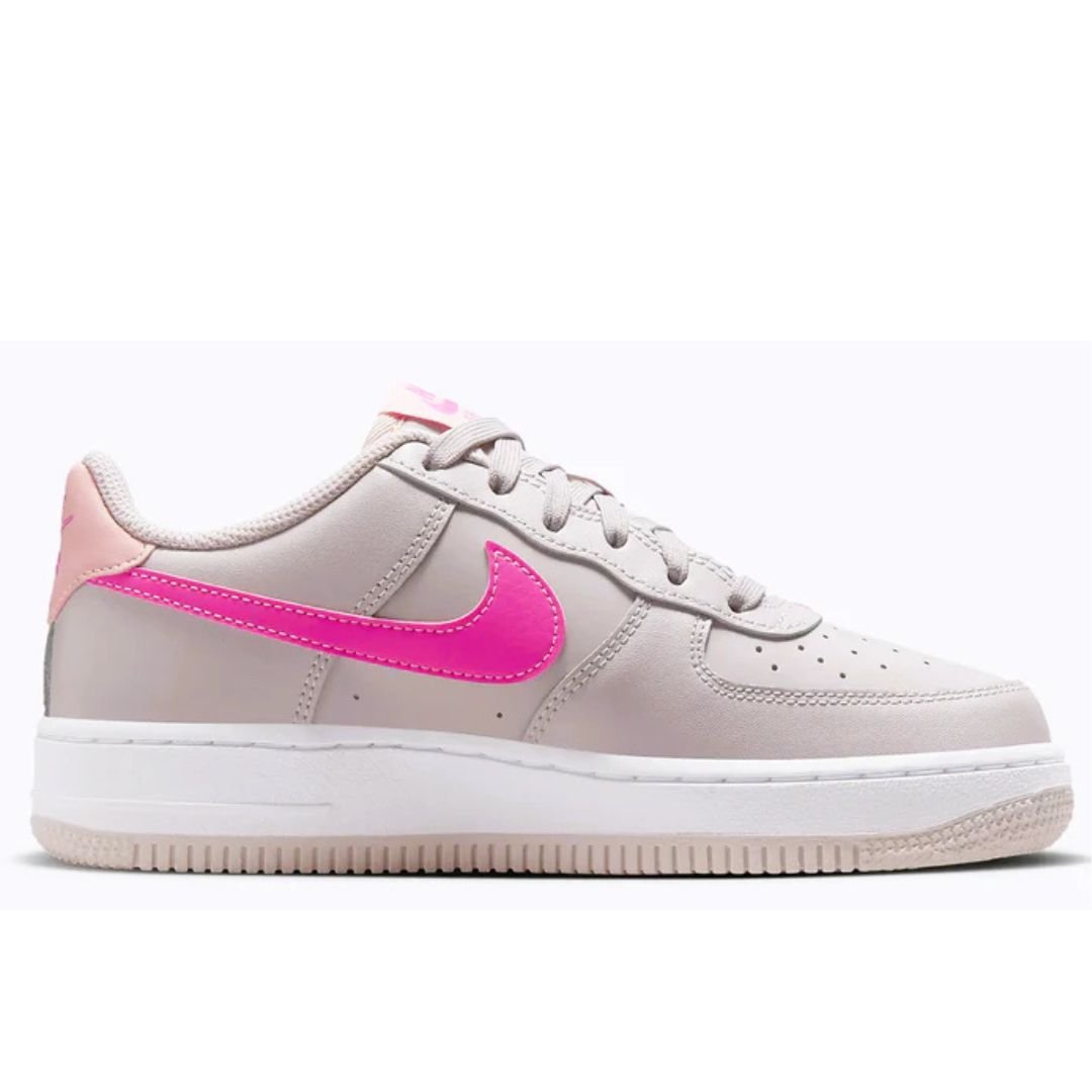 The Nike Air Force 1 Low Platinum Violet Pinksicle (GS) showcases a sleek Platinum Violet leather upper, beautifully contrasted by lively Pinksicle accents on the Swoosh and heel tab, creating a fresh and youthful aesthetic. It offers superior comfort and durability, making it perfect for both daily wear and standout occasions.