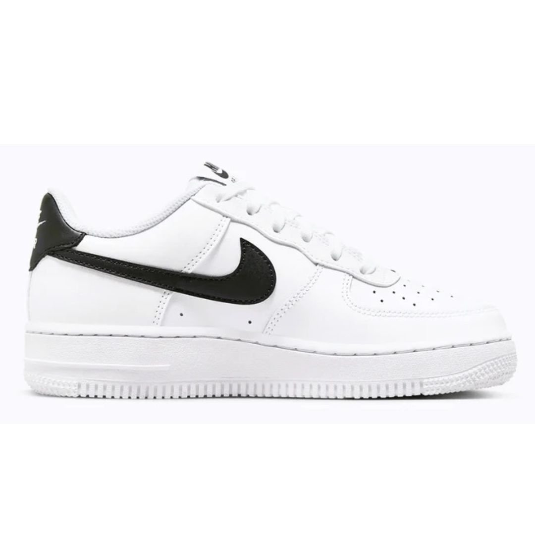 The Nike Air Force 1 Low White Black (2024) (GS)—a harmonious blend of classic design and modern flair. This iconic silhouette features a pristine white leather upper, accented by a bold black Swoosh and matching heel tab, delivering a timeless monochrome aesthetic that complements any outfit. The durable construction and comfortable cushioning ensure all-day wearability, making it perfect for both casual wear and active adventures.