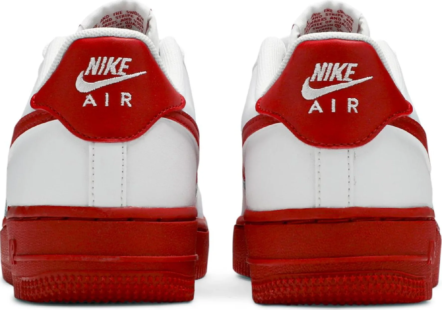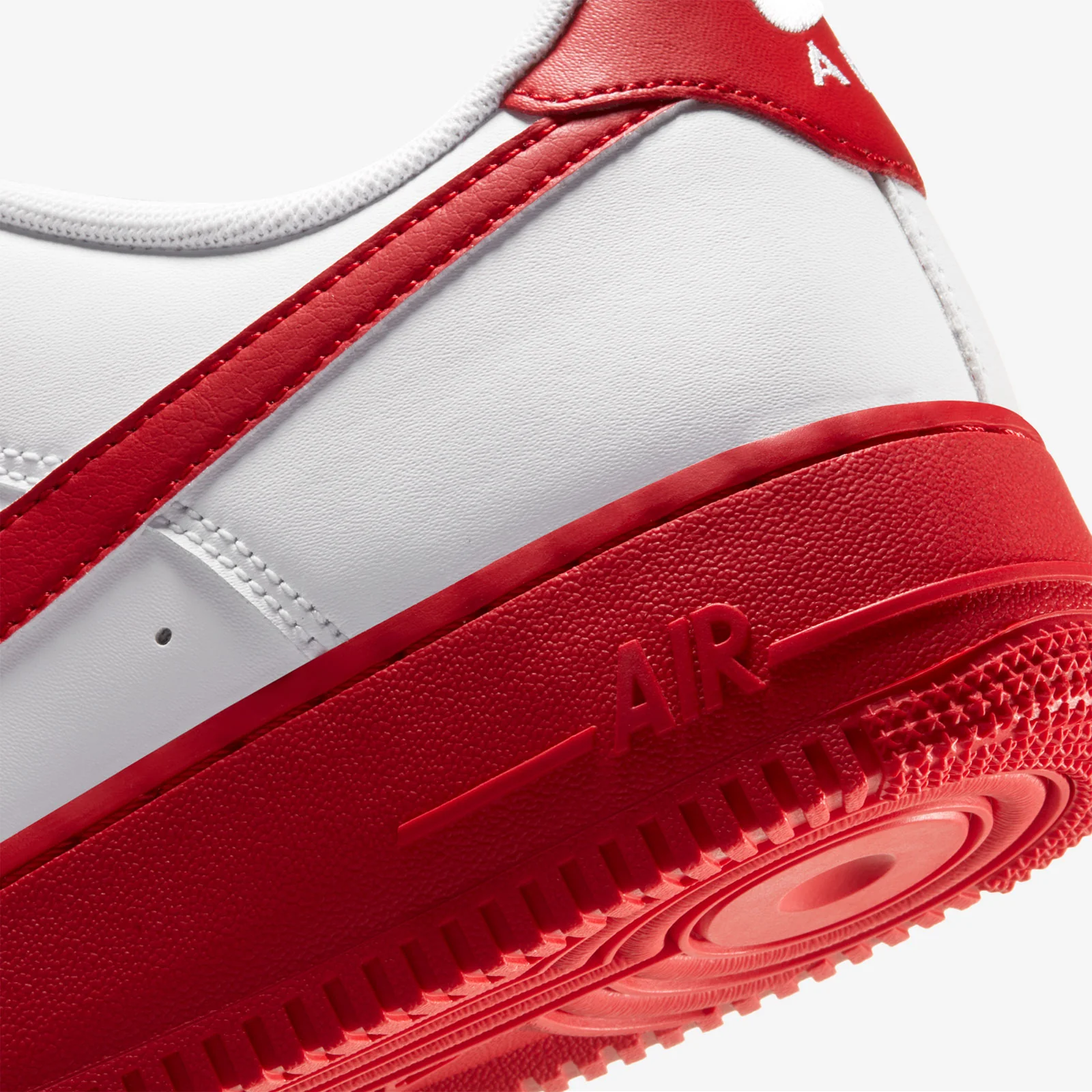 The shoe is primarily white with hints of red featured on Nike Swoosh, the sole and on the heel. It also features a perforated upper which is made from a mix of faux and genuine leather and a ribbed sole that is made from rubber. In addition, there is Nike Air branding on the outer side of the sole and above the heel.