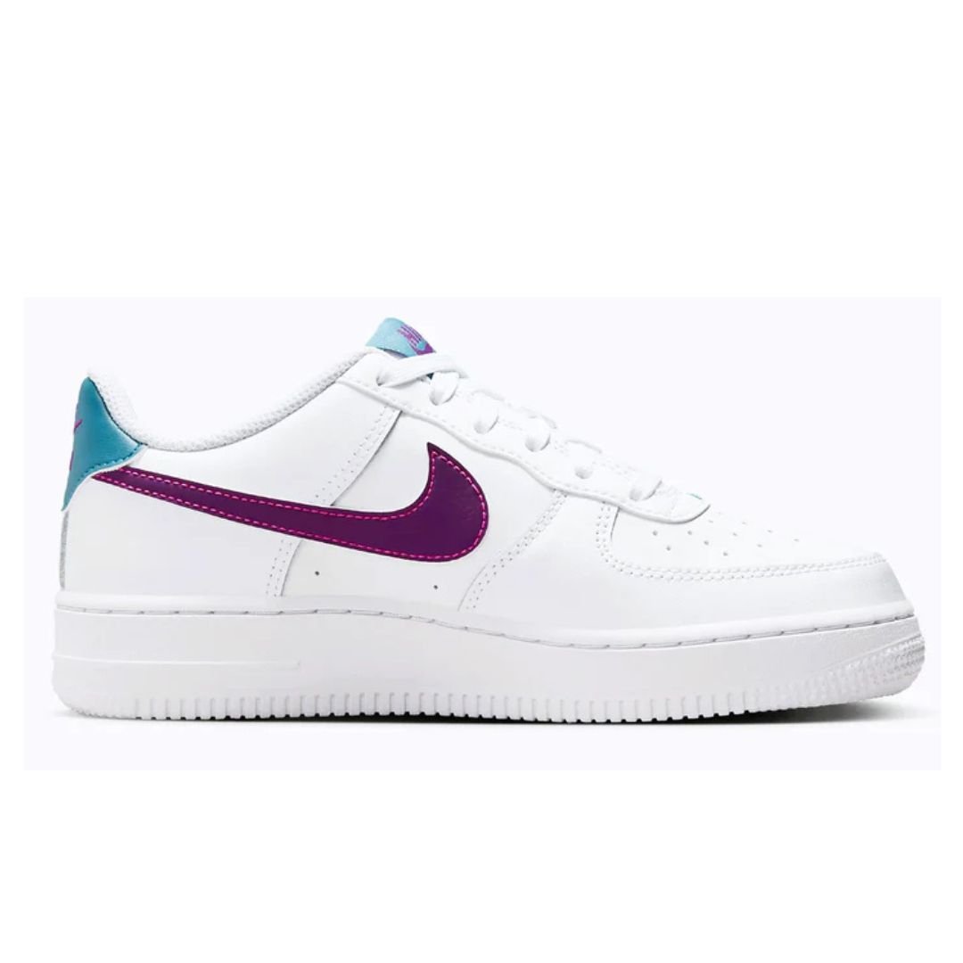 Elevate your sneaker collection with the Nike Air Force 1 Low White Viotech (GS)—a harmonious blend of classic design and vibrant flair. Crafted with a pristine white leather upper, this iconic silhouette is accentuated by striking Viotech purple stitching, branding, and outsole, delivering a fresh twist to a timeless favorite. Designed for grade school sizes, it ensures both style and comfort for young trendsetters. The Nike Air Force 1 Low White Viotech (GS) combines heritage aesthetics with contemporary color pops.