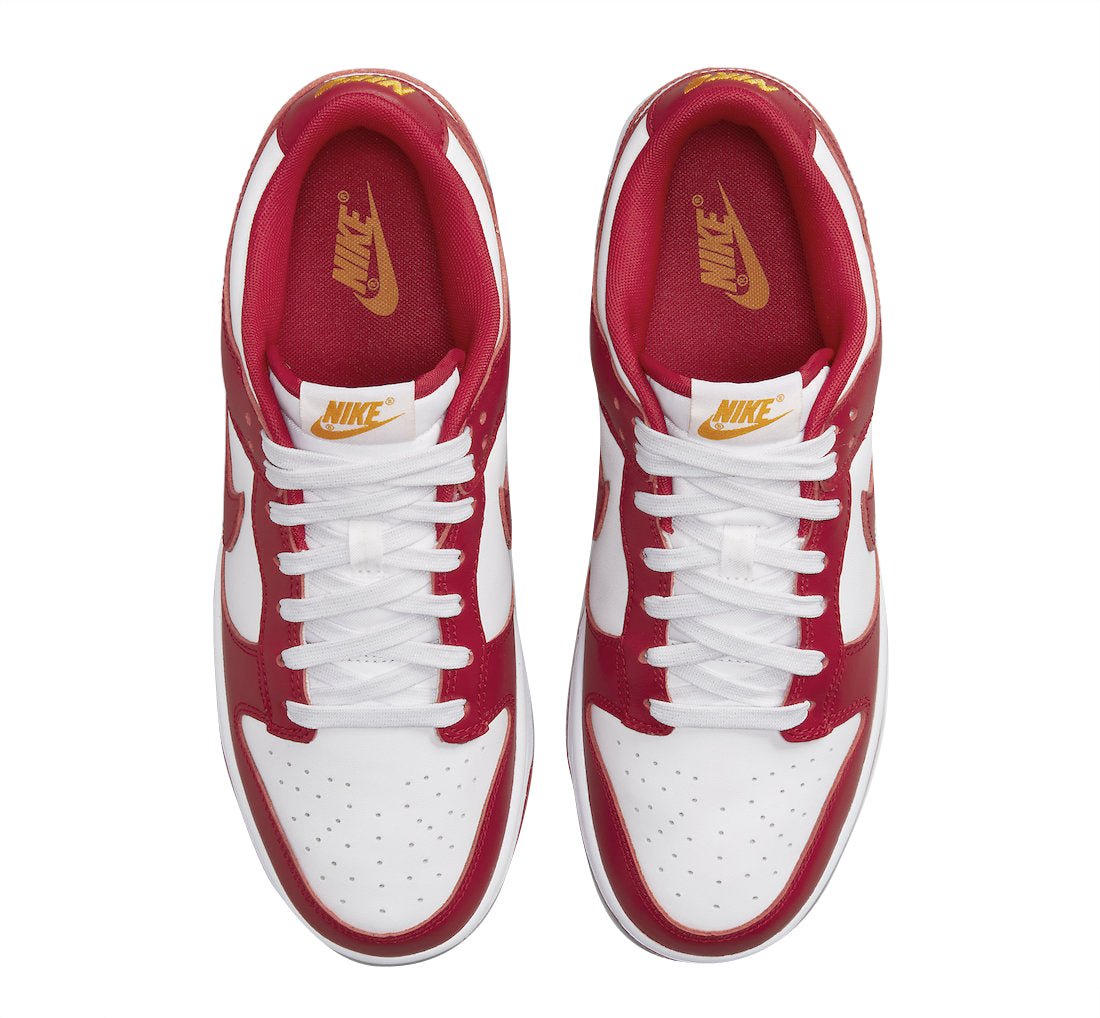 There Nike Dunk Low USC draws his inspiration from the American academic world. It displays a base in white leather accompanied by overlays in red leather, the two colors representing USC, L’South Carolina University in Columbia. To punctuate everything, there is a discreet touch of yellow on the brandings of the tongue and heel, also tinted on the equipment of the different USC teams.